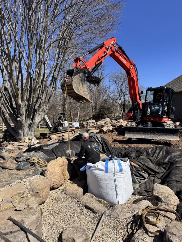 This pond project in Kennett Square is far from finished, and we are excited to share updates as we bring each element to life. From the careful excavation to the final installation of the fire bowls, every step presents an opportunity to innovate and refine the design.