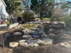 We’ve started 2025 strong with a beautifully finished pond construction project in Wayne, PA. This custom water feature reflects thoughtful design, precise execution, and a focus on natural aesthetics. Let’s walk through the final phase of this project and explore what sets this pond build apart.