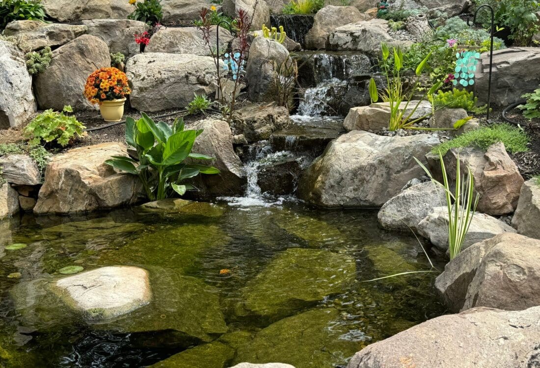 We typically recommend ponds no smaller than 8’ x 10’. In our local climate, this size helps ponds overwinter properly and support fish health. Smaller water features are better suited as pondless waterfalls.